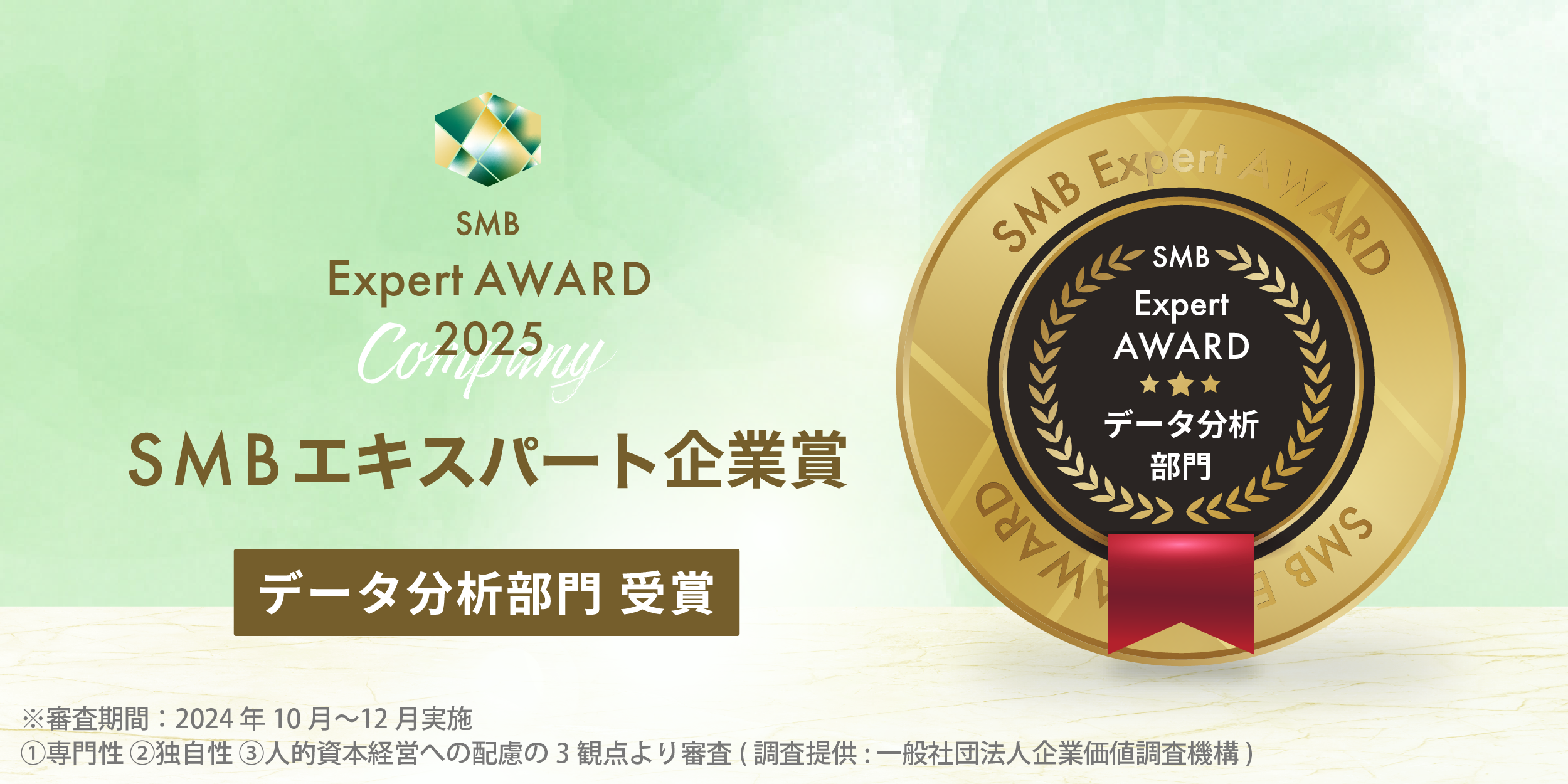 Read More弊社は、市場調査・分析を行う一般社団法人企業価値調査機構より SMB領域(※Small to Medium Businessの略称で従業員数が500名以下の企業群の総称を意味します) にて「2025年度 SMBエキスパート企業賞 データ分析部門」を受賞しました。 紹介ページ…
